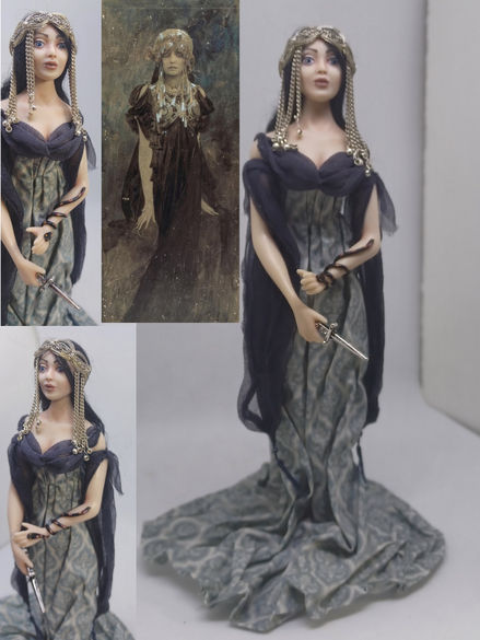 Dolls are kits made in porcelain that I assembly, paint, wig and dress myself or sculpted in polymer clay.